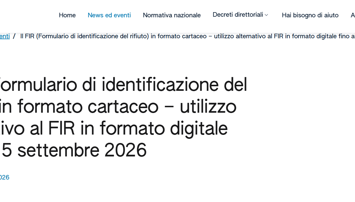 Il chiarimento pubblicato sul portale RENTRI conferma quindi che fino al 15 settembre 2026 il FIR potrà continuare a essere emesso in formato cartaceo, come alternativa al formulario digitale previsto dal nuovo sistema di tracciabilità.